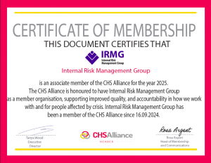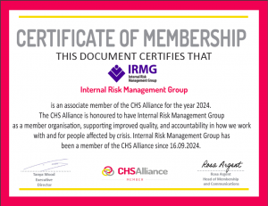 Congratulating IRMG as Associate Members of Core Humanitarian Standards(CHS) We’re proud to share that the Internal Risk Management Group (IRMG) has successfully maintained its status